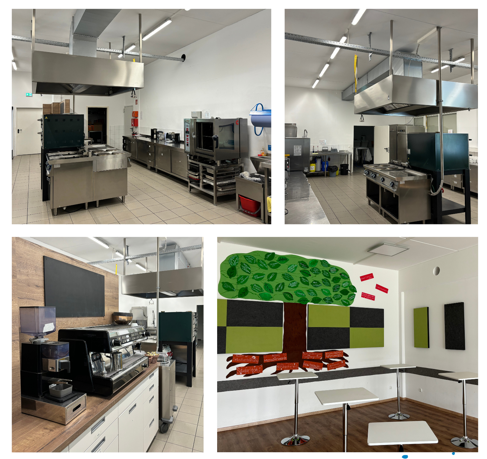 Das Bistro grenzt direkt an die Küche an und ist durch eine Durchreiche mit der Küche verbunden. Die Küche ist optional zubuchbar.